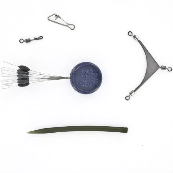 Ebben a szettben megtalálható az előke rögzítésére szolgáló gyorskapcson és kötésvédő gumin át, a gubancgátló csúszását megütköztető gumigyöngyökön keresztül minden, amire egy feederező horgásznak szüksége lehet.