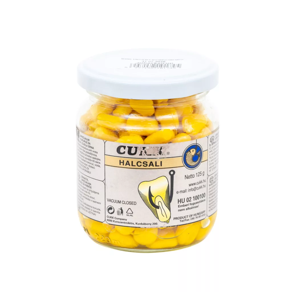 A CUKK szines üveges horgászkukoricák sértetlen, egész kukoricaszemeket tartalmaznak. A szemek keménysége és horogállósága ideális. A méz ízesítés a halak egyik nagy kedvence, legyenek azok keszegfélék, pontyok, amurok. Jó fogási eredmények és rengeteg kapitális példány kifogása fűződik a CUKK ezen termékéhez. Felbontva és gondosan visszazárva még hónapokon át is folyamatosan felhasználhatók a megromlás veszélye nélkül. A CUKK szines üveges horgászkukoricáihoz felhasznált festékanyagok élelmiszerminősítésüek, az egészségre és a környezetre veszélytelenek.