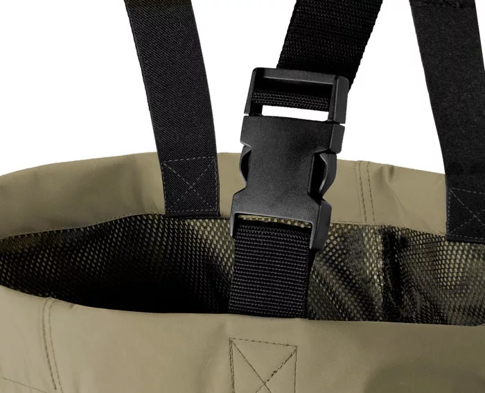 A HRON mellcsizma egy megbízható modell a Delphin márkától. Kiváló tulajdonságok és kiváló minőségű kivitelezés jellemzi. Minden részlet tökéletes pontossággal van elkészítve. A modern anyagnak köszönhetően teljesen vízhatlan és kényelmes a viselése az alacsony súlyának köszönhetően. A mellcsizma belsejébe egy hálós anyag van bele varrva, mely csökkenti a bőr érintkezését a vízálló anyaggal és így csökken az izzadás is. Hatalmas bónusz ebben a kategóriában a neoprén térd megerősítés, mely lehetővé teszi a kényelmes esetleges letérdepelést a víznél. A standard állítható vállpántokon kívül, ez a modell rendelkezik kivehető övvel is, hogy még jobban illeszkedjen a mellcsizma az alakjához. Az ellenálló és stabil talpal rendelkező gumicsizma segít a legkeményebb feltételeknél is. A sarok részen kiálló lehúzás segítő is természetesség.