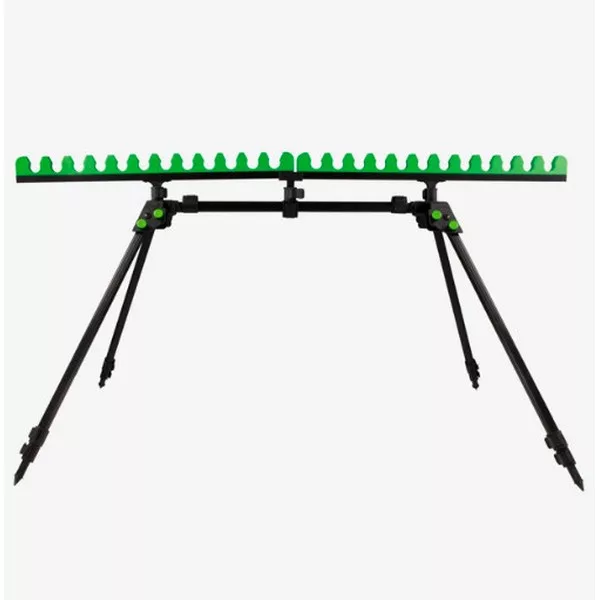 Speciális bottartó állvány, amely tökéletesen használható rakós botok topszettjeinek vagy feeder botok tárolására is. Forgatható szivacsos fejének köszönhetően, a 24 férőhelyes tartórészt könnyedén átalakíthatjuk rod-podszerűvé, ezzel tovább bővül a termék funkcionalitása, használhatósága. Állítható lábainak köszönhetően szinte bármilyen partviszonnyal könnyedén megbirkózhatunk.