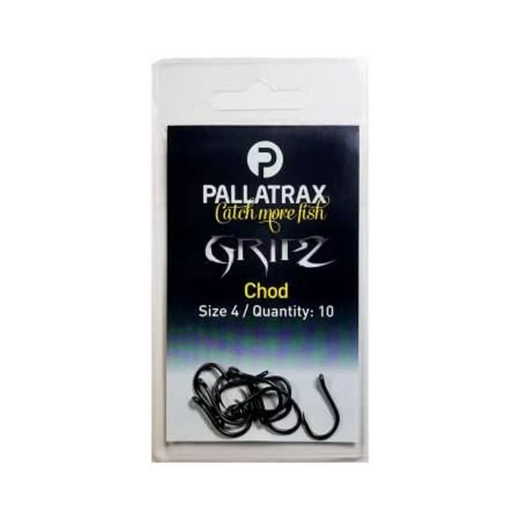 A Chod horogforma elérhető 4-es, 6-os és 8-as méretben, elsősorban azoknak a pontyhorgászoknak, akik saját Chod előkéiket szeretnék elkészíteni. A Pallatrax Gripz Chod horgok rendkívül erősek, hogy megbirkózzanak a nagy, erőteljesen küzdő pontyokkal – pontosan erre tervezték őket! A pop-up csalik hatékony felkínálásához a Chod horgok kihajlított horogszemmel készülnek, amely biztosítja a kiváló akadást a megakasztott halaknál. A legtöbb lebegő csalival használt szerelékhez, például a Zig és Chod rigekhez, a Chod horog az első számú választás, de hajszálelőkével kombinált süllyedő csalikkal is rendkívül sikeres. A csomagból kivéve borotvaélesek, így nincs szükség további élezésre.