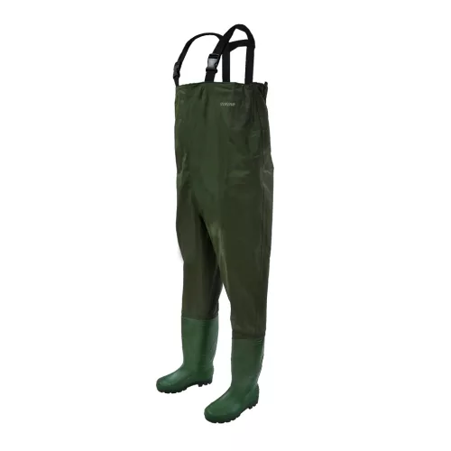 Magas minőségű strapabíró gázlóruhát terveztünk erre a célra, PVC-NYLON alapanyagból. A csizma 100% PVC konstrukció, amelyre hegesztéssel kerül a felsőrész.